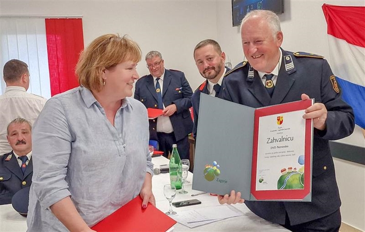 Zamjenica župana Petek je ovu veliku obljetnicu čestitala svim sadašnjim i bivšim članicama i članovima DVD-a Petrovsko te uz osobne zahvale za očuvanje tradicije, humanosti i plemenitosti, predsjedniku Željku Presečkom uručila zahvalnicu, koju je župan Željko Kolar uručio DVD-u za 50 godina časnog i uspješnog rada, zaštite imovine i ljudi.